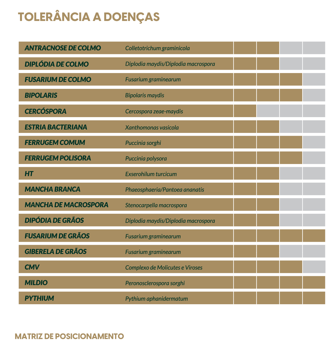 - Alta tolerância a Pythium, Míldio, Fusarium de colmo e Xantomonas;